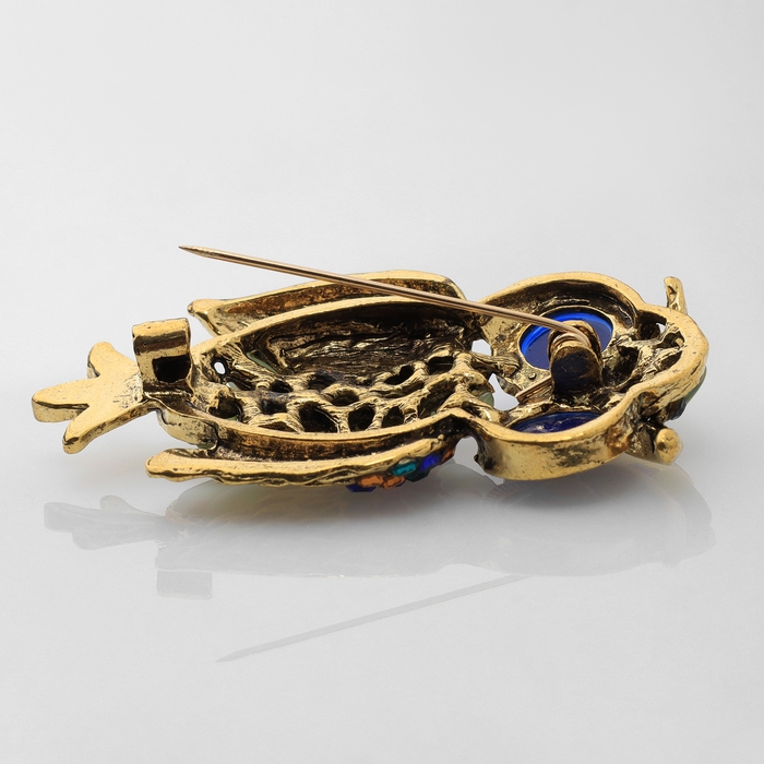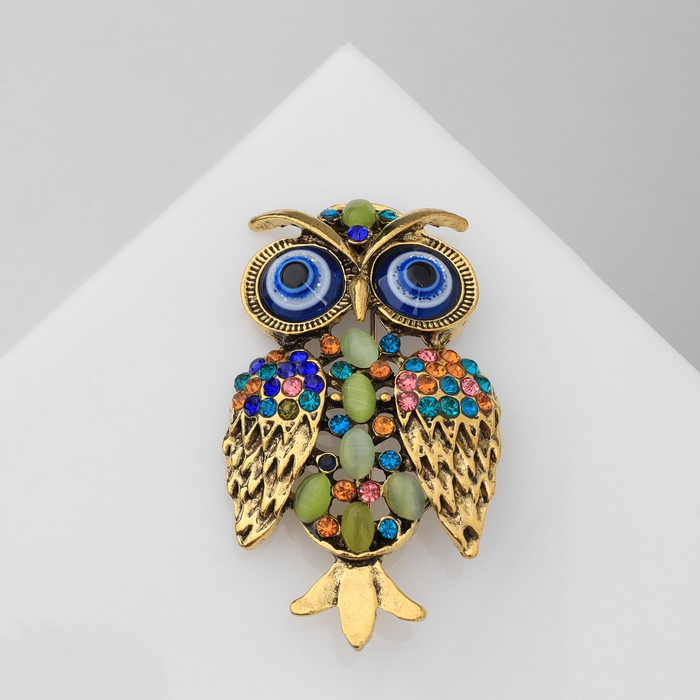 Брошь «Сова», цветная в чернёном золоте