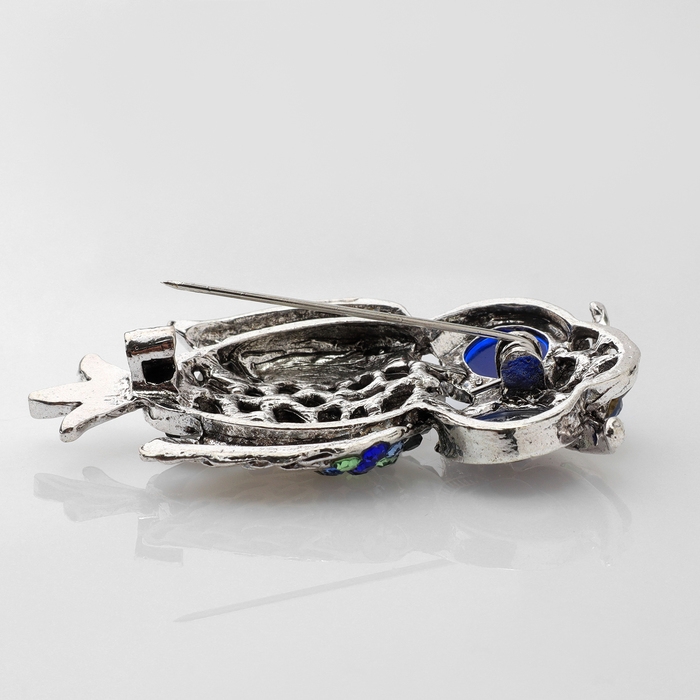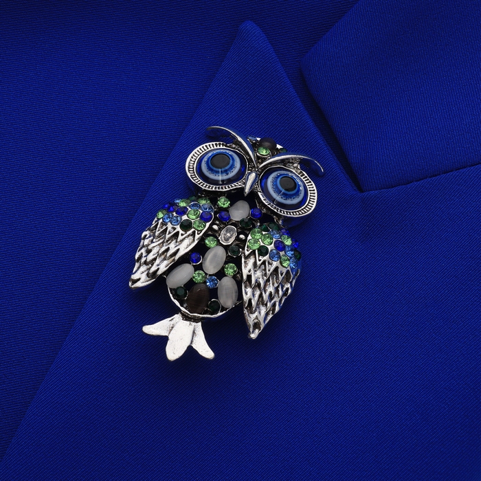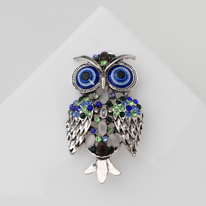 Брошь «Сова», цветная в чернёном серебре