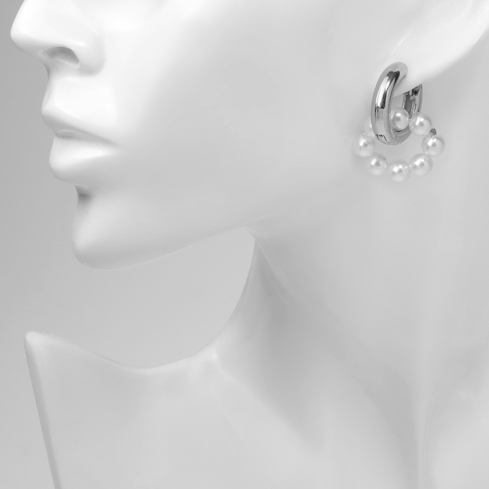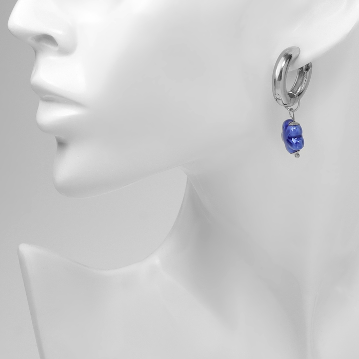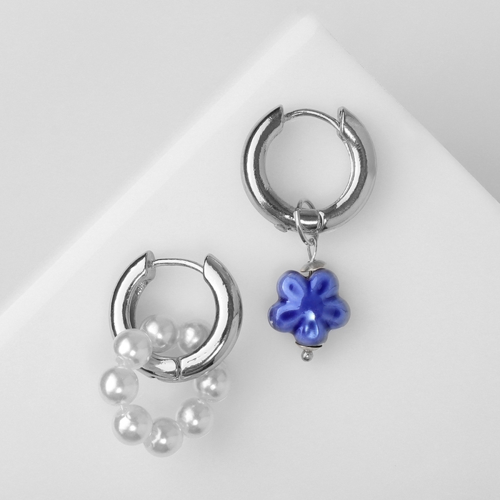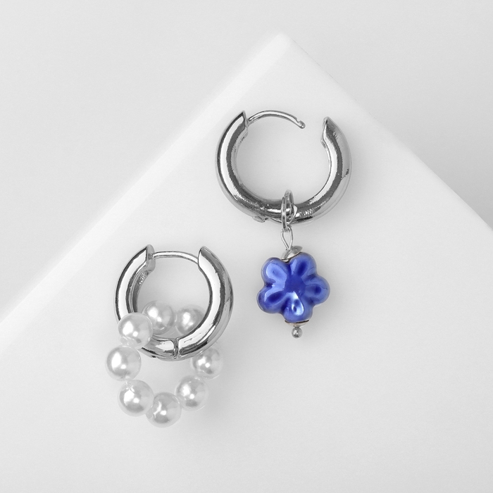 Серьги со съёмным элементом «Трансформер» цветок, цвет бело-синий в серебре