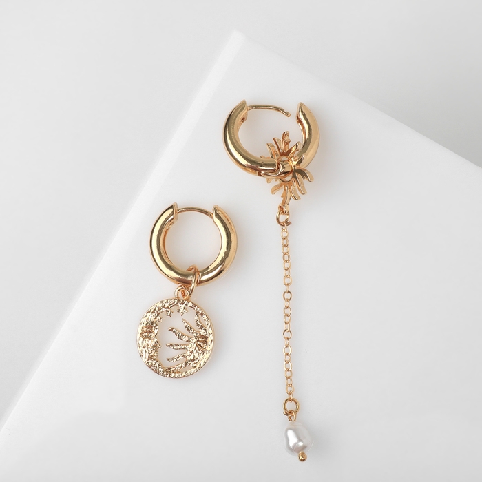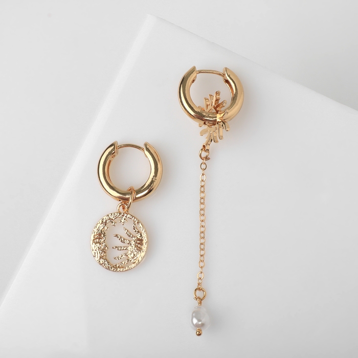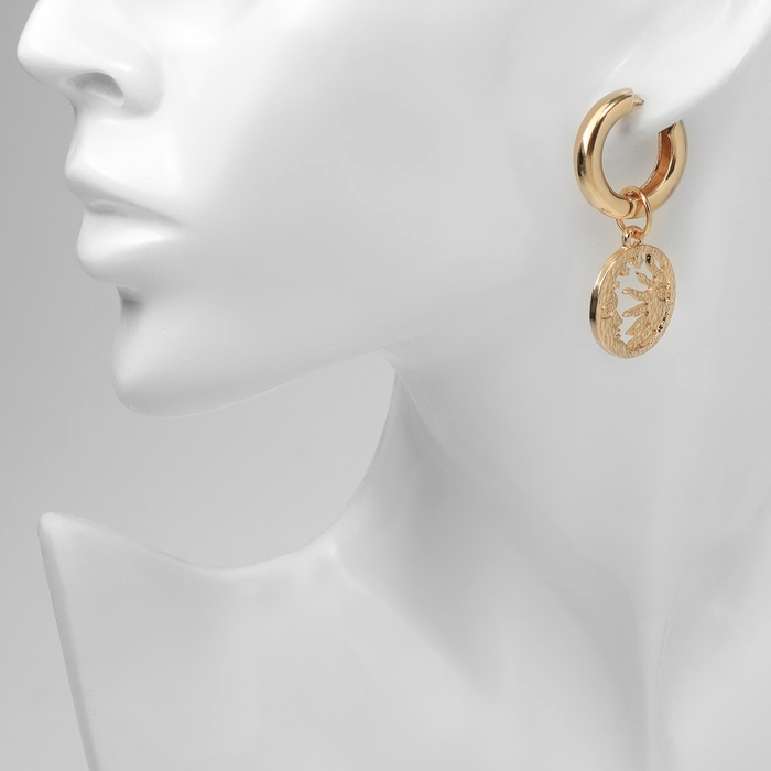 Серьги со съёмным элементом «Трансформер» солнце, цвет белый в золоте