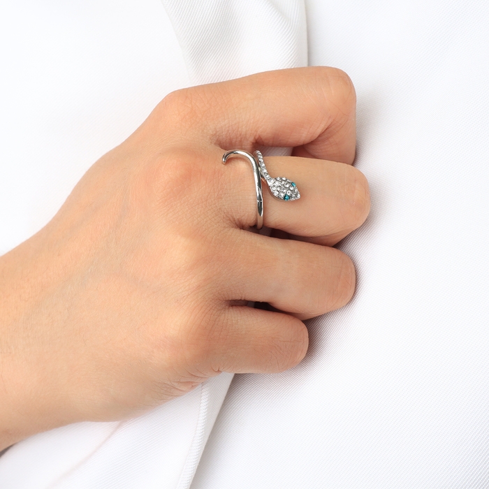 Новый год! Символ года 2025! Кольцо «Змея» миниатюрная, цвет бело-зелёный в серебре, безразмерное
