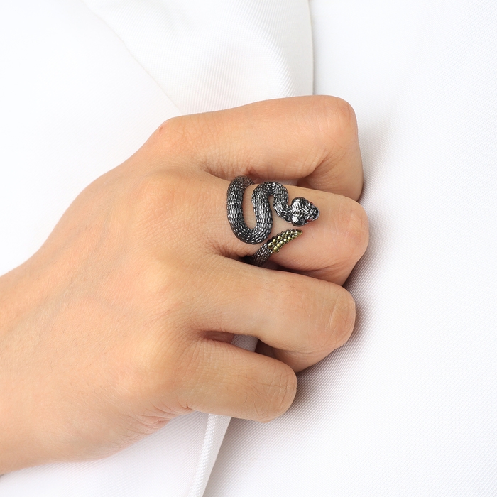 Новый год! Символ года 2025! Кольцо «Змея» гремучая, цвет серо-золотой, безразмерное