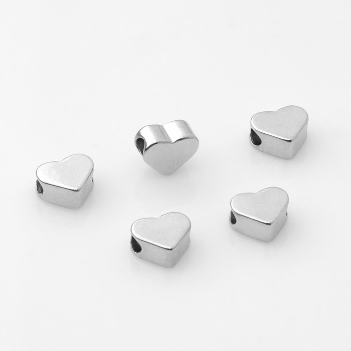 Бусина-разделитель родир. «Сердечко», 6×6 мм, d(вн.)=2 мм, (набор 10 шт.), цвет серебро