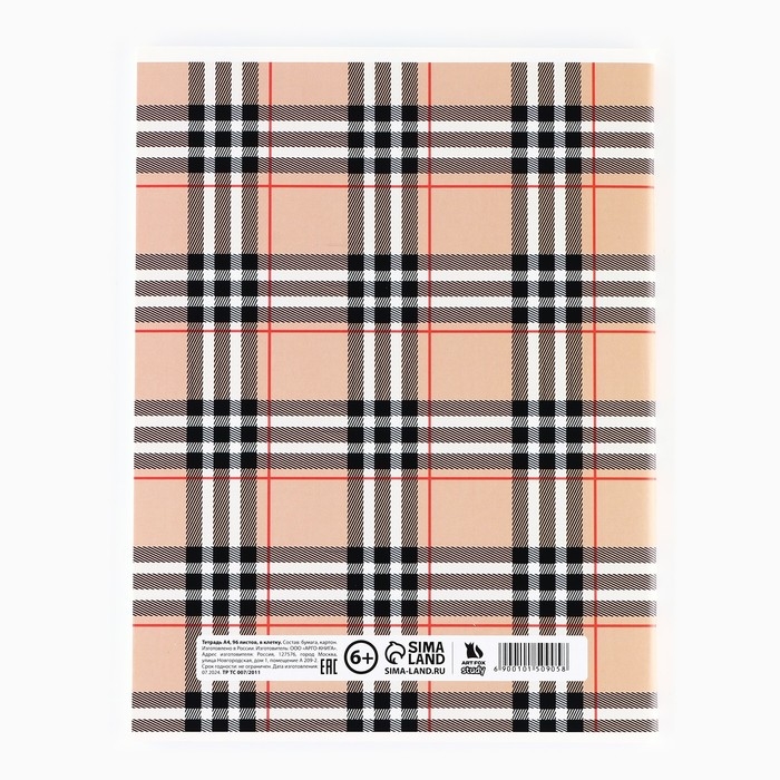 Тетрадь в клетку А4 в клетку, А4, 96 листов на скрепке «1 сентября:Burberry»