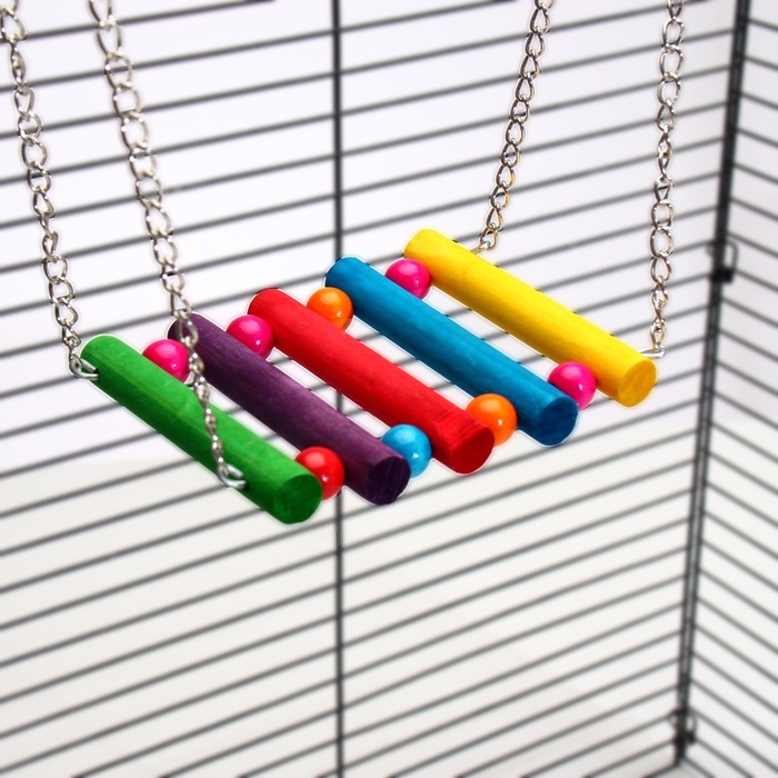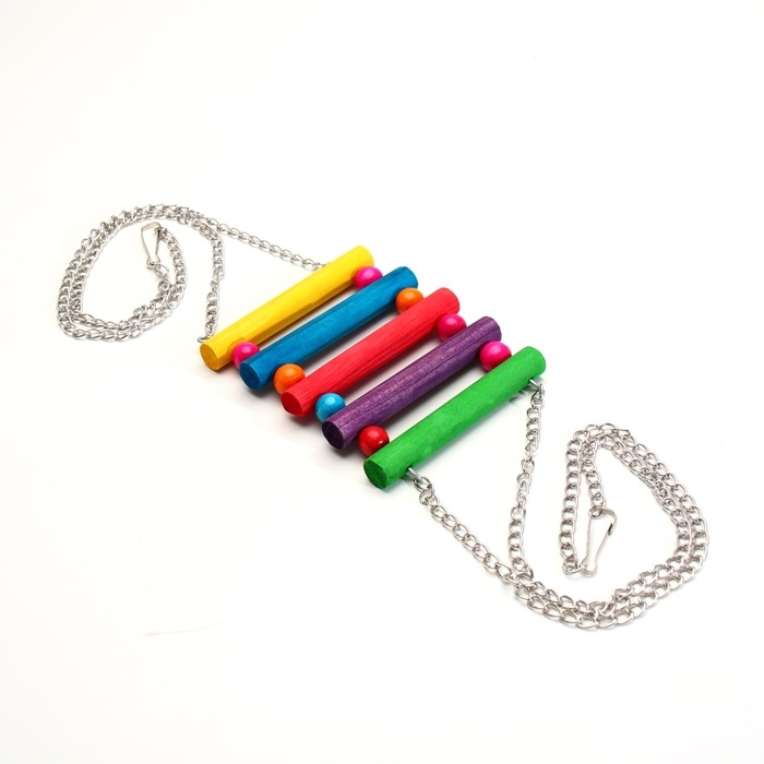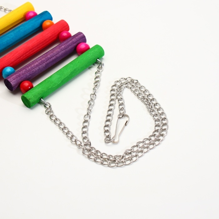 Качели-лесенка имеет прочную основу, которая обеспечивает стабильность и безопасность при использовании. Благодаря своей конструкции она легко крепится к любой клетке для птиц.