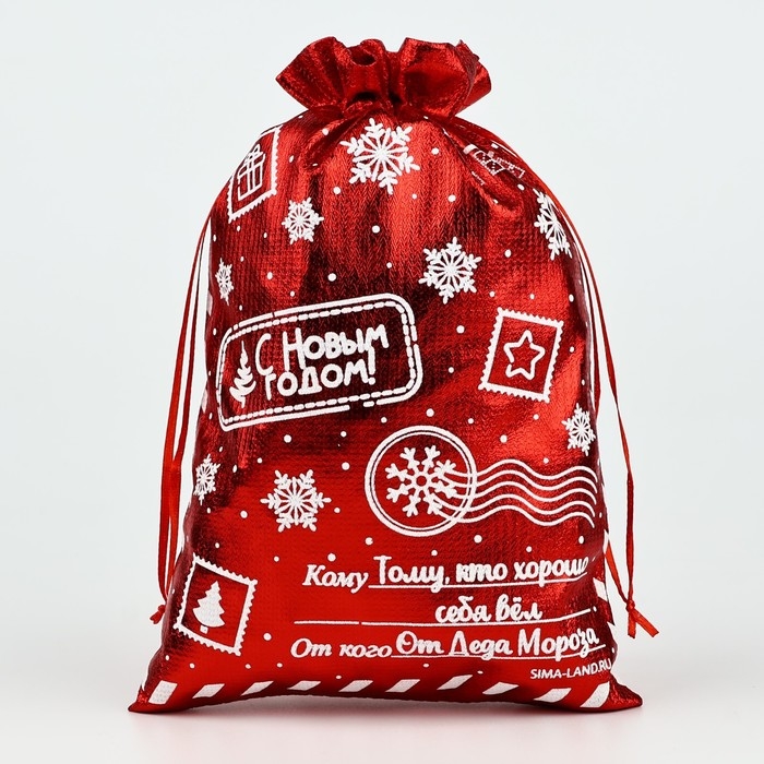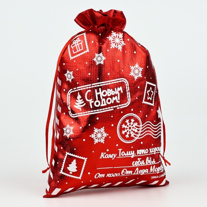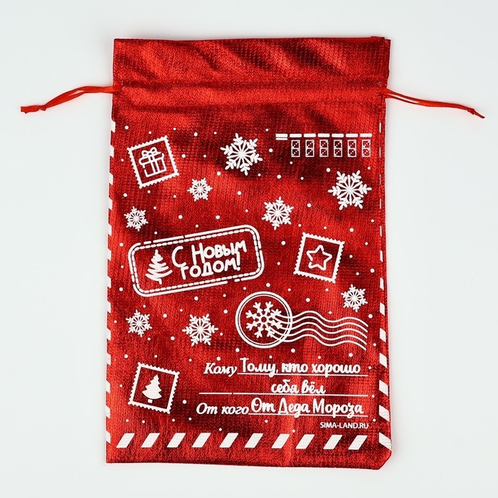 Мешочек подарочный парча «С Новым годом», красный, 16 х 24 см, Новый год