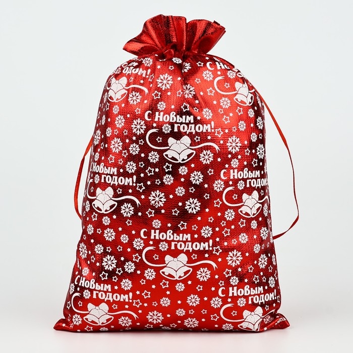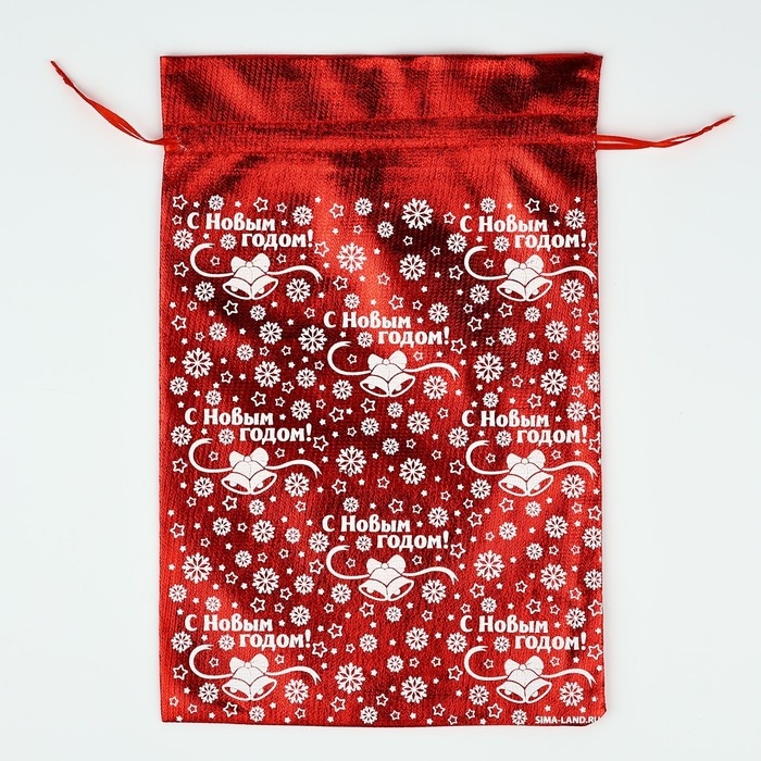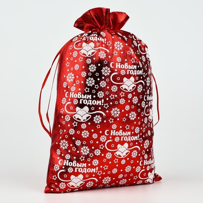 Мешочек подарочный парча «Снежинки», красный, 20 х 30 см, Новый год