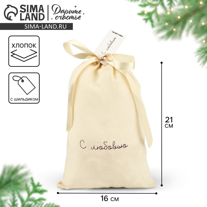Мешок из хлопка «С любовью», 16 × 24 см