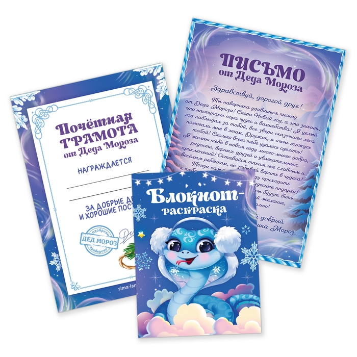 Подарочный набор новогодний, блокнот-раскраска, грамота, письмо от Деда Мороза «Змейка»
