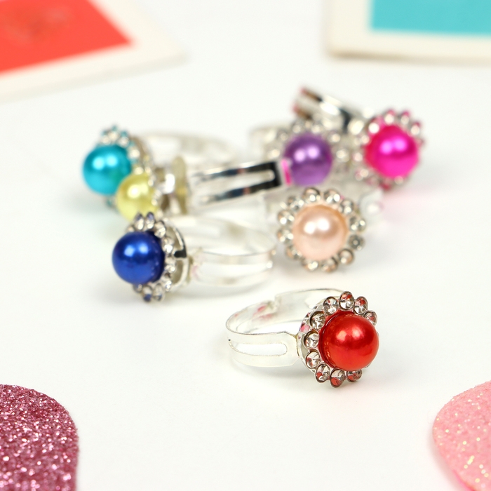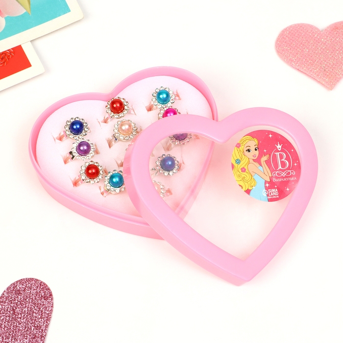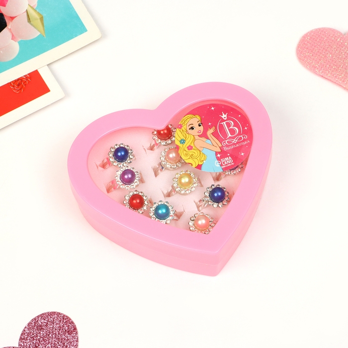 Кольца детские набор 12шт «Выбражулька» цветочки, цвет МИКС в серебре, б-р
