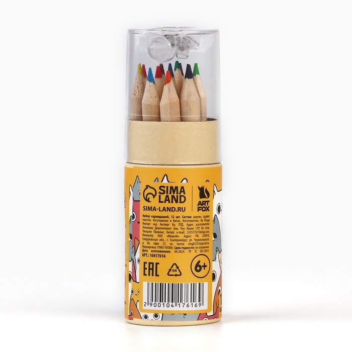 Цветные карандаши мини в тубусе, 12 шт «Котики»