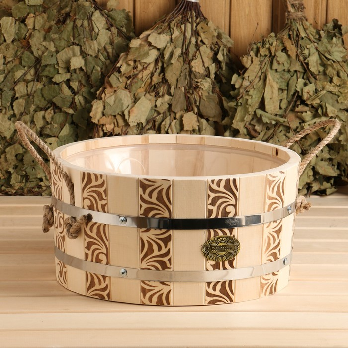 Шайка из липы, 15 л, круглая, нержавеющий обруч, "Добропаровъ"