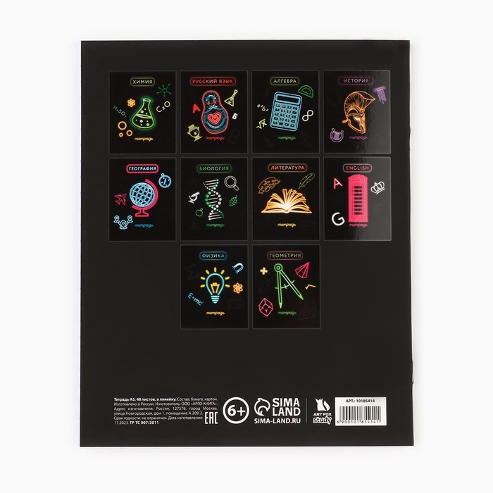 Предметная тетрадь А5, 48 л на скрепке «Неон. Русский язык» Софт тач лам, 3D лак