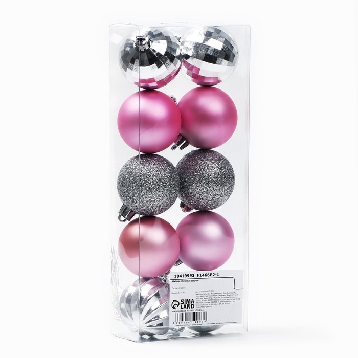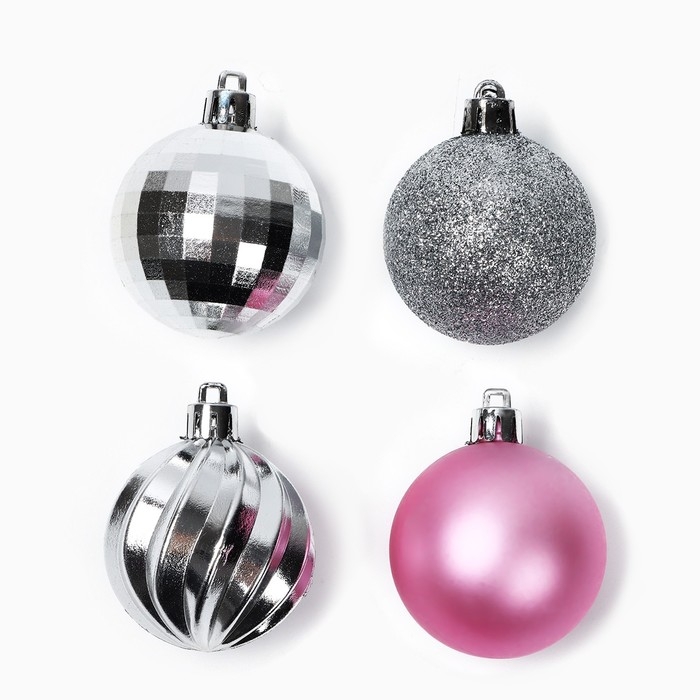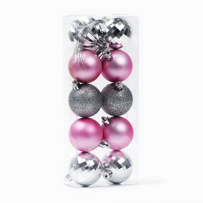 Новогодние шары ёлочные, на Новый год, d=5 см, 10 шт., цвет розовые и серебристый