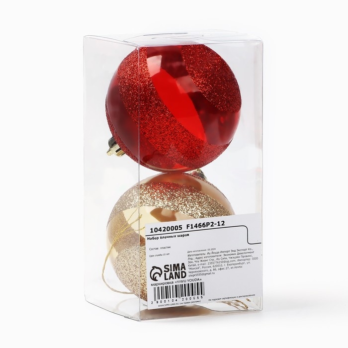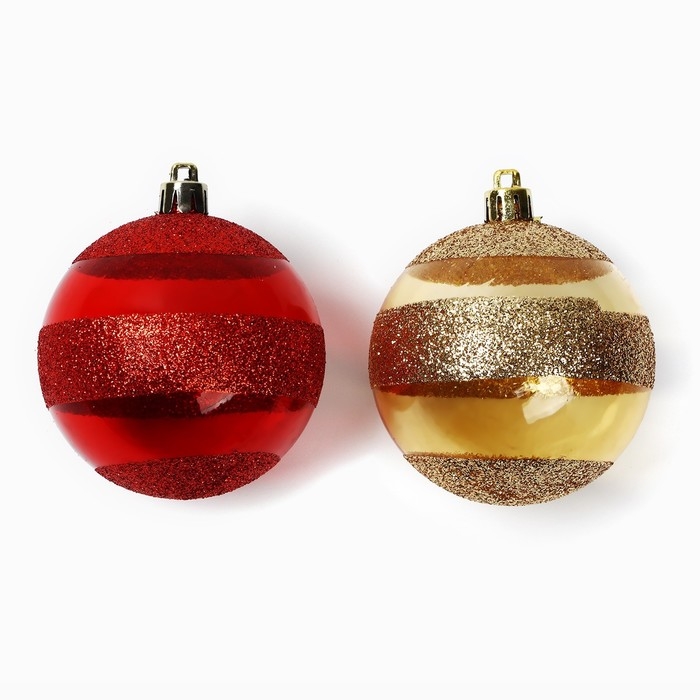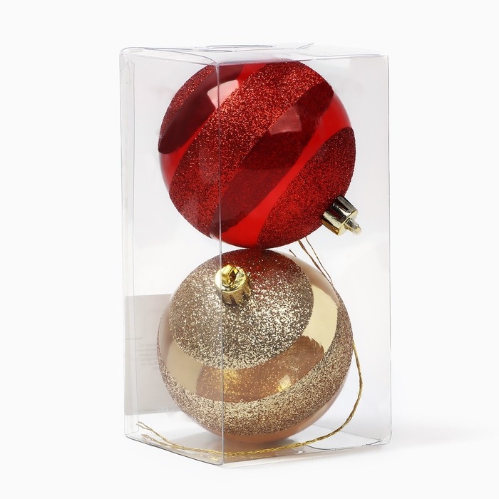 Новогодние шары ёлочные, на Новый год, d=7 см, 2 шт., цвет красный и золотой
