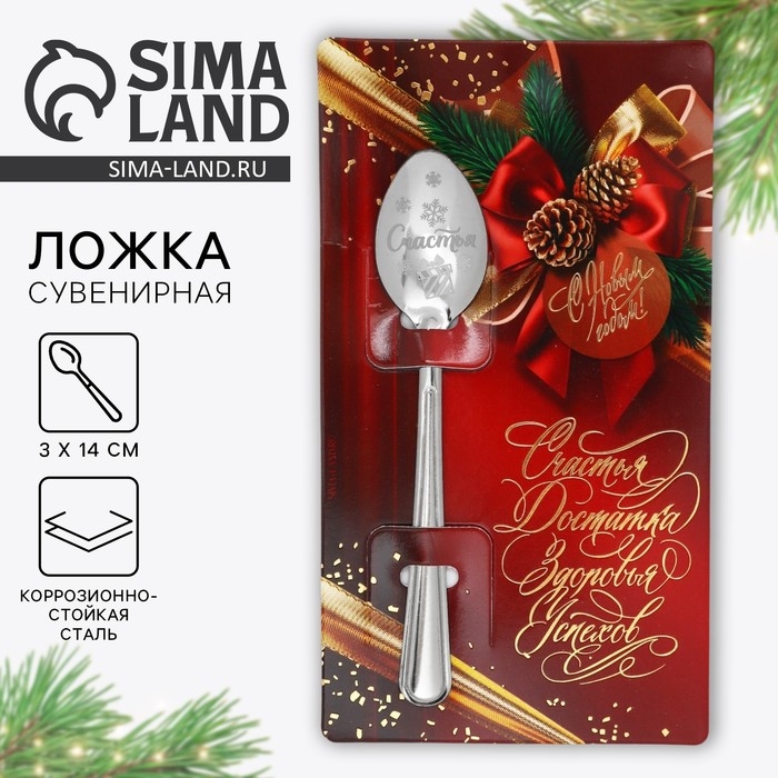 Ложка сувенирная на открытке «Новогодняя коллекция: Счастья, достатка», 3 х 14 см