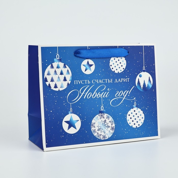 Пакет подарочный новогодний ламинированный «Счастье», новогодние шары, MS 18 х 23 х 10 см , Новый год
