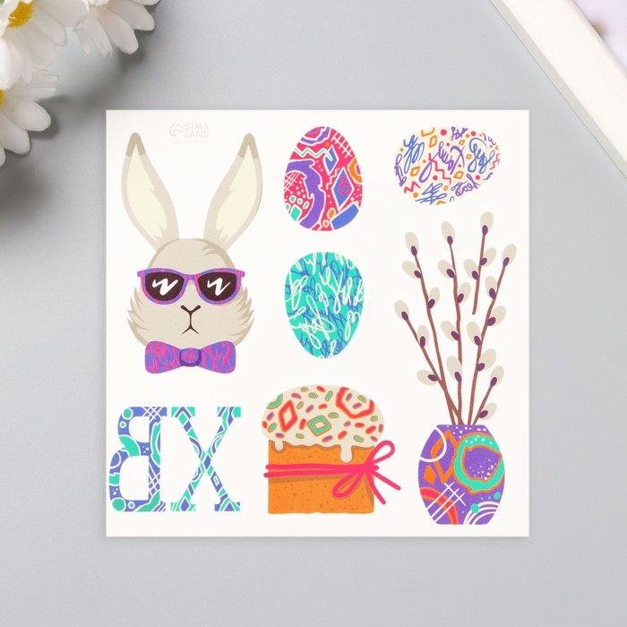 Татуировка на тело цветная "Кролик в очках" 10х10 см