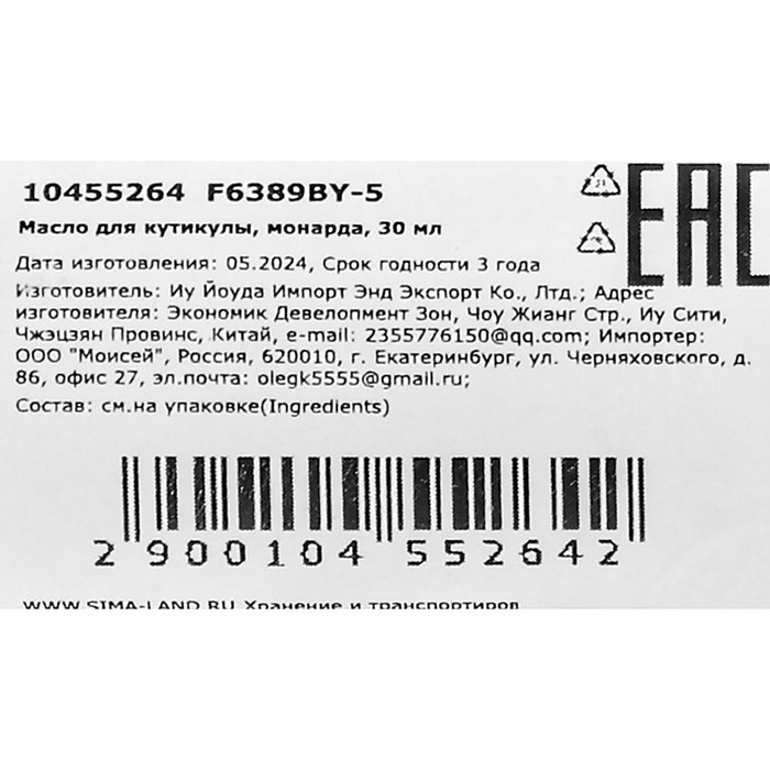 Масло для увлажнения и питания кутикулы 30 мл, экстракт монарды