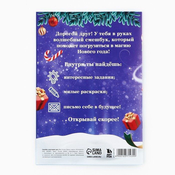 Подарочный набор новогодний, смешбук и восковые мелки «Смешбук Новогодних чудес»