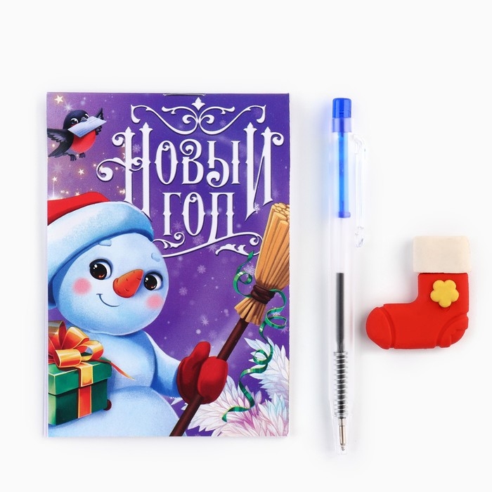 Подарочный набор новогодний блокнот, ручка и ластик «Подарок для тебя»