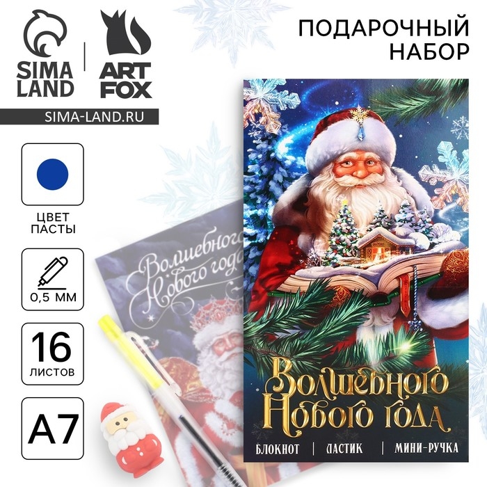 Подарочный набор новогодний блокнот, ручка и ластик «Волшебного Нового года»