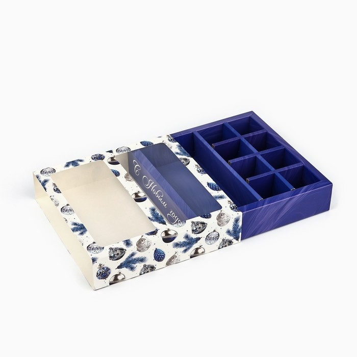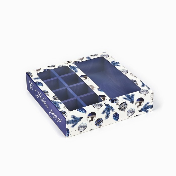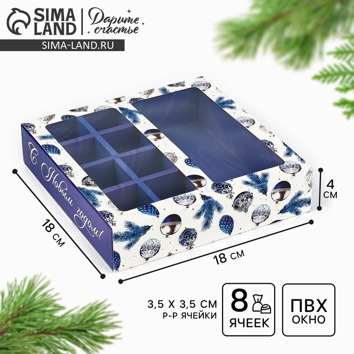 Коробка под 8 конфет и шоколад с ячейками «С Новым годом!», 18 х 18 х 4 см, Новый год