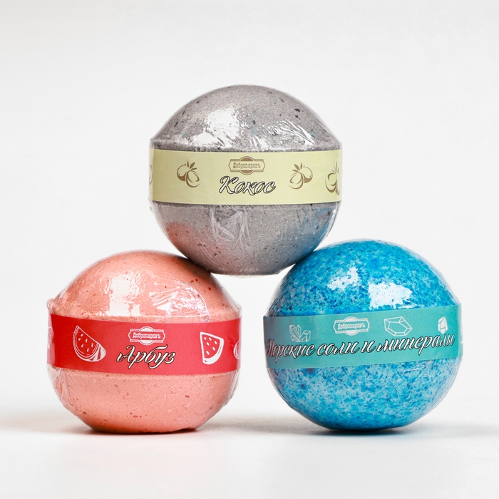 Бомбочки в спайке "Кокос, Арбуз, Морские соли и минералы" набор 3 шт по 110 г