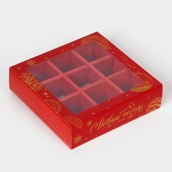 Новый год. Коробка под 9 конфет "С Новым годом", 13,8 х 13,8 х 3,8 , кондитерская упаковка