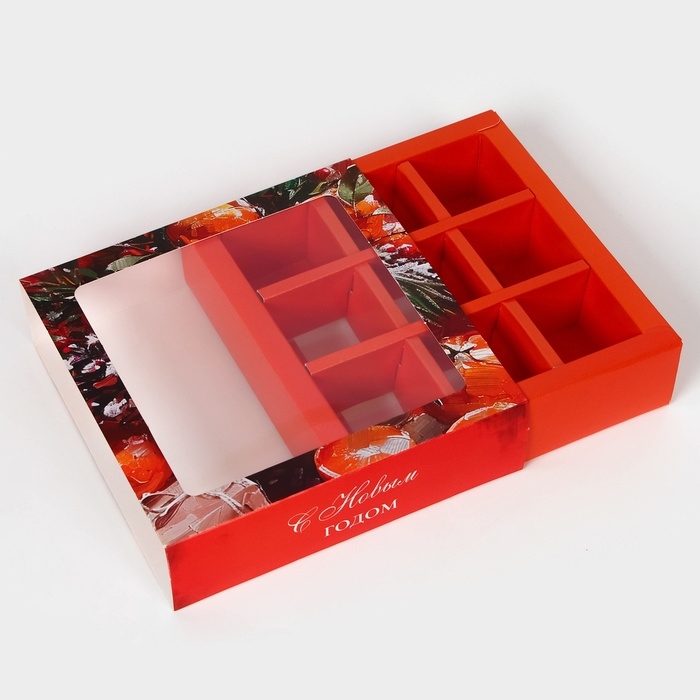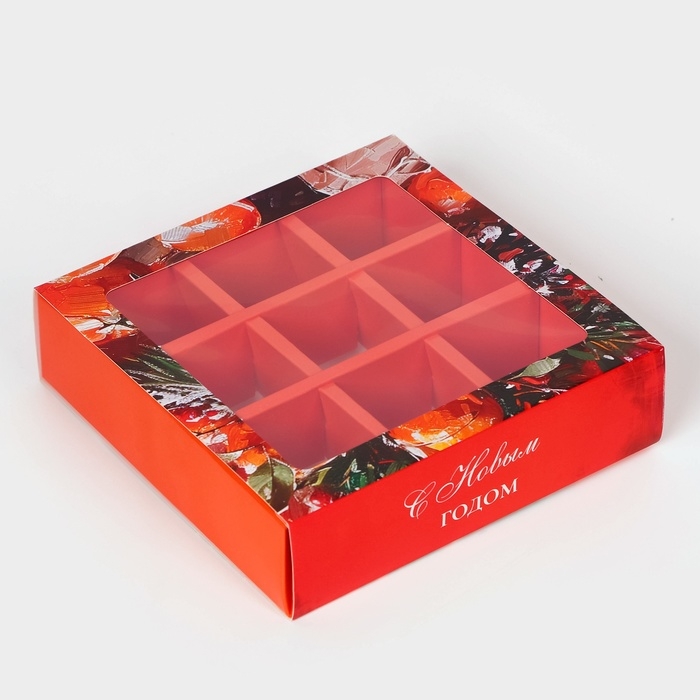 Новый год. Коробка под 9 конфет "Новогодняя", 13,8 х 13,8 х 3,8 , кондитерская упаковка