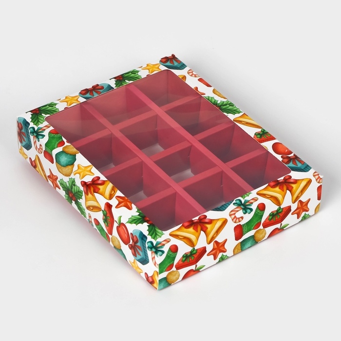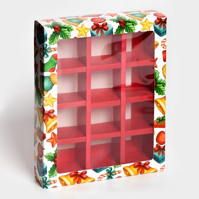 Размеры коробки позволяют упаковать 12 штук конфет, что делает ее удобной для использования в качестве подарка или для домашнего использования. Коробка изготовлена из качественного картона, который обеспечивает надежную защиту содержимого от внешних воздействий.