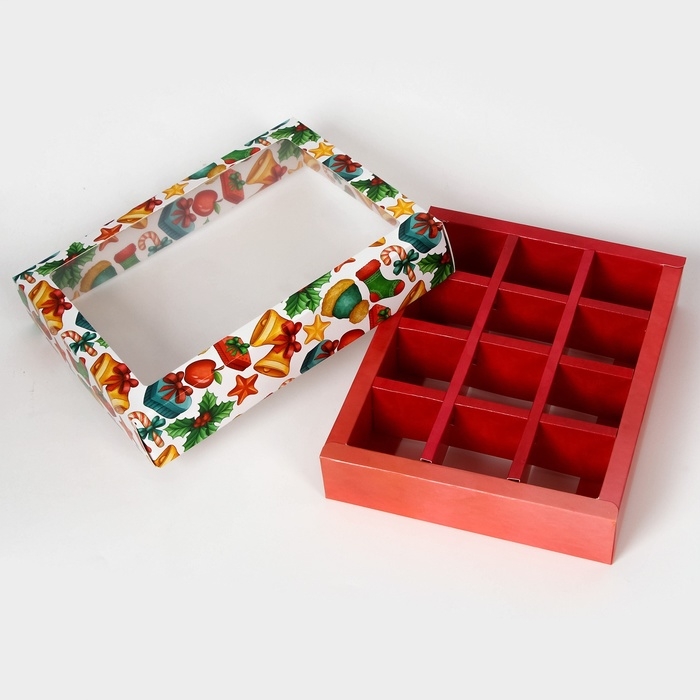 Коробка для конфет "Новогодняя" размером 19х15х3,6 см - это идеальный выбор для упаковки сладостей к празднику. Она выполнена в ярких новогодних цветах, что создает атмосферу праздника и волшебства.