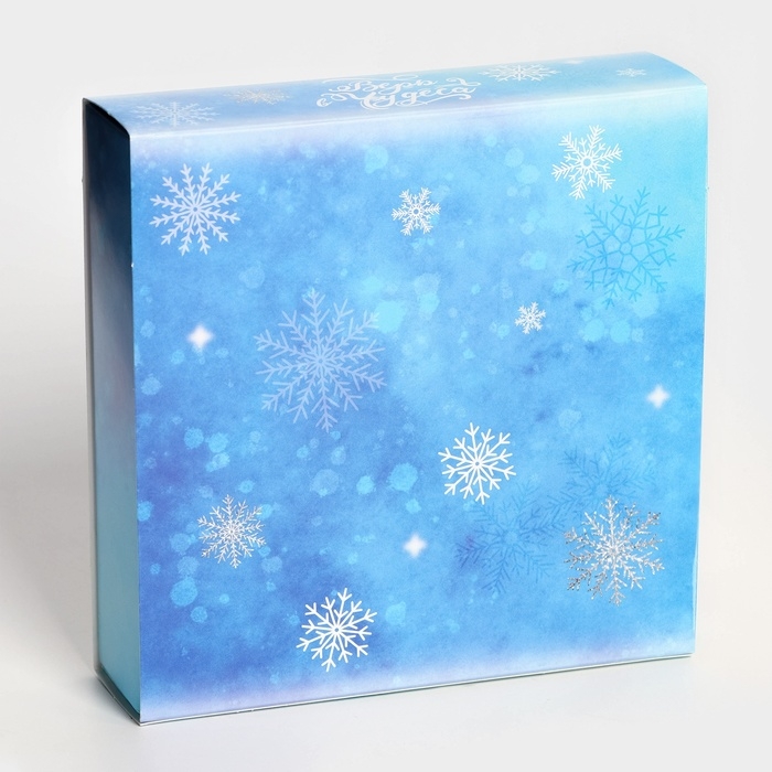 Новый год. Коробка под 9 конфет "Снежинки", 13,7 х 13,7 х 3,5 см, кондитерская упаковка
