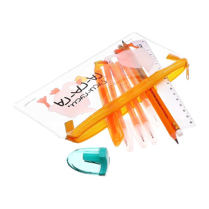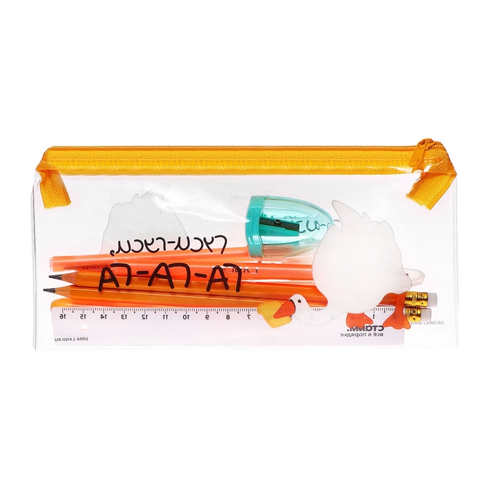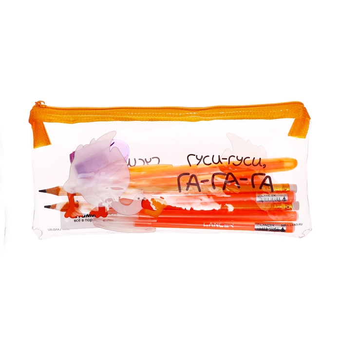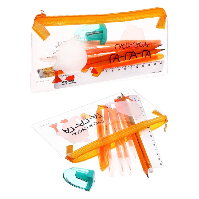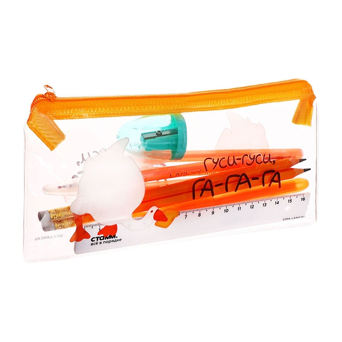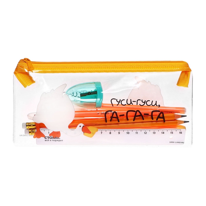 Пенал мягкий, 1 отделение, 95 х 205 мм, плоский, c наполнением 9 предметов, Calligrata "Гуси-гуси", универсальный