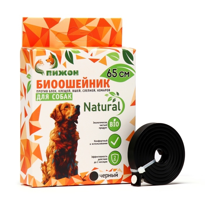 Биоошейник от паразитов "ПИЖОН Natural" для собак от блох и клещей, чёрный, 65 см