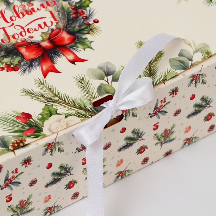 Коробка украшена изысканным новогодним дизайном. Этот дизайн создает ощущение тепла и радости, добавляя к вашему подарку праздничное настроение.