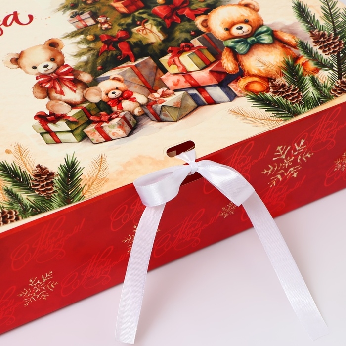 Новый год. Коробка подарочная новогодняя складная, упаковка, «Ёлка и медведь», 31 × 24,5 × 8 см .