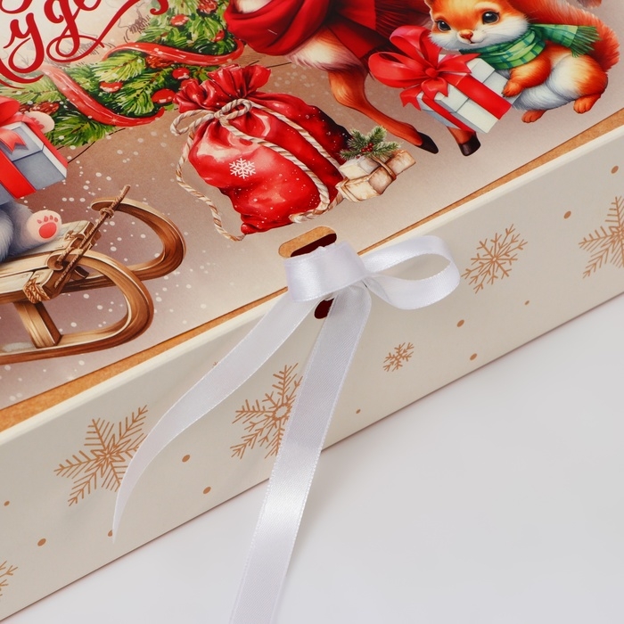 Новый год. Коробка подарочная новогодняя складная, упаковка, «Зверята и подарки», 31 × 24,5 × 8 см.