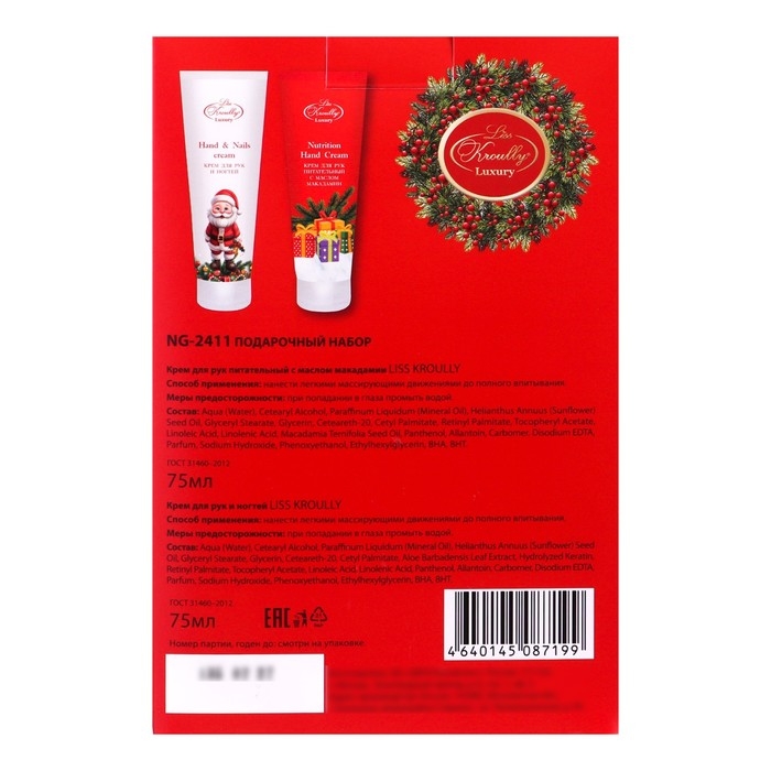 Новый год. Новогодний подарочный набор косметики Liss Kroully: крем для рук и ногтей, 75 мл + крем для рук, 75 мл