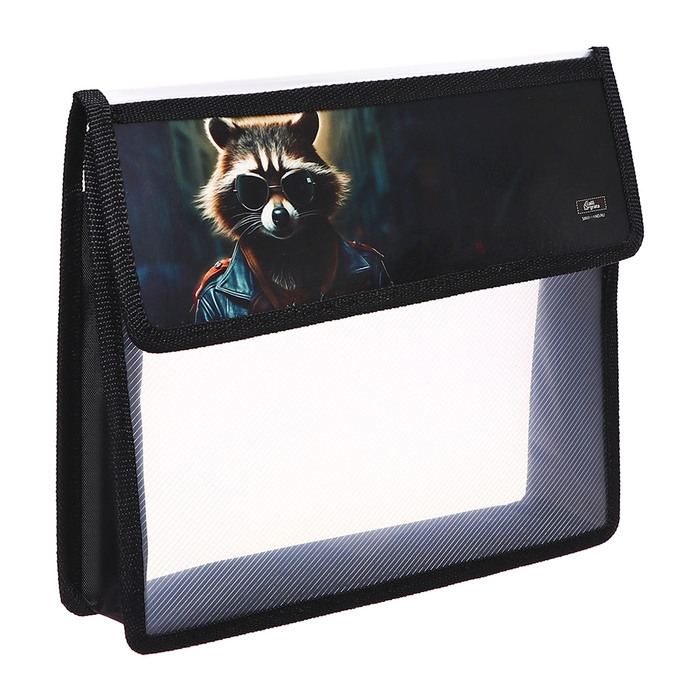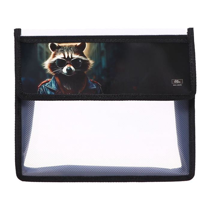 Папка для тетрадей А5 (230 х 190 х 50 мм), с клапаном на липучке, пластик/текстиль, Calligrata, "Енот"