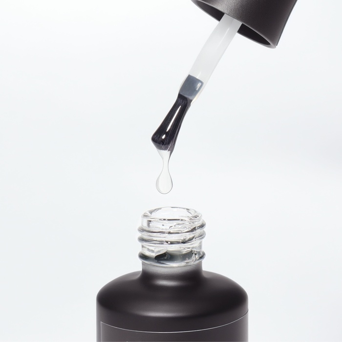 Третья фаза — наносим топовое покрытие. Топ служит для защиты маникюра от небольших механических повреждений, сколов, царапин. Также он придает блеск и способен сгладить неровности ногтя.