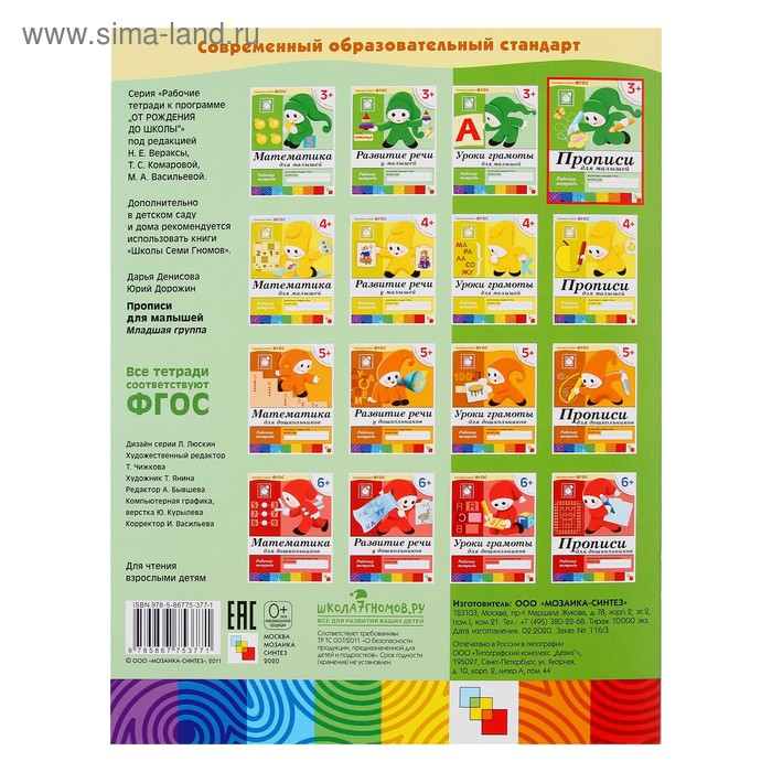 Набор рабочих тетрадей: математика, прописи, развитие речи, уроки грамоты. Младшая группа 3+