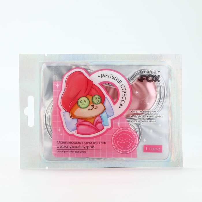 Патчи для области вокруг глаз «Меньше стресса», 1 пара, гидрогелевые с жемчужной пудрой, BEAUTY FOX