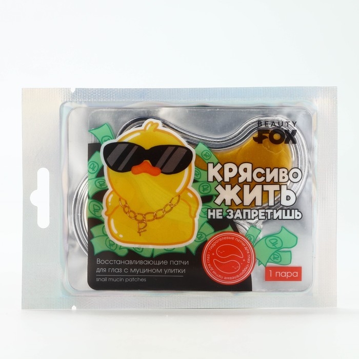 Патчи для области вокруг глаз «КРЯсиво жить не запретишь», 1 пара, гидрогелевые с муцином улитки, BEAUTY FOX