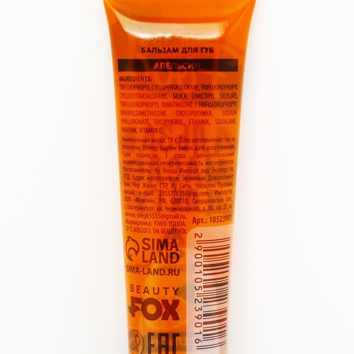 Бальзам-масло для губ с витамином Е, 18 мл, аромат апельсина, BEAUTY FOOD