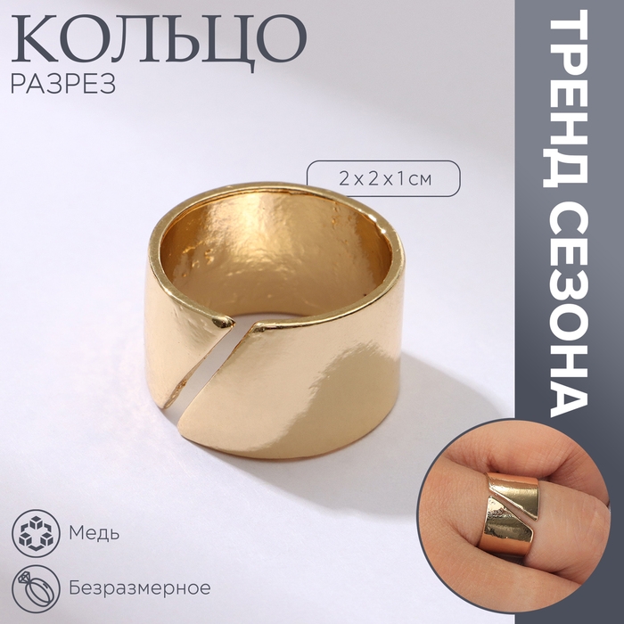 Кольцо «Разрез» тренд, цвет золото, безразмерное