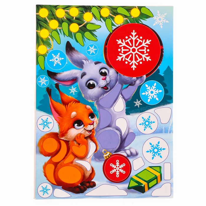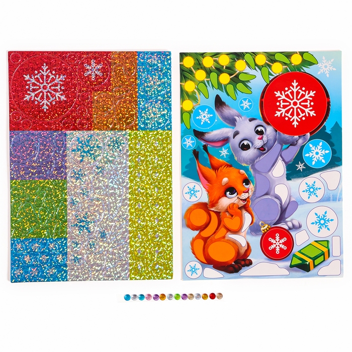 Аппликация форменными стикерами на новый год «Лесные зверюшки», новогодний набор для творчества — это простая и эффектная аппликация!