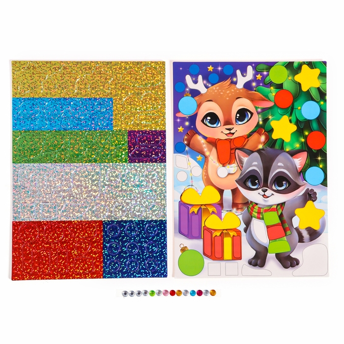 Аппликация форменными стикерами на новый год «Загадай желание», новогодний набор для творчества