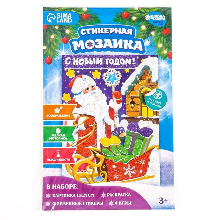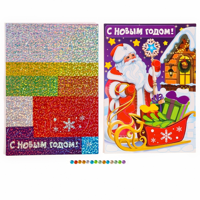 Аппликация форменными стикерами на новый год «С Новым Годом!», новогодний набор для творчества — это простая и эффектная аппликация!