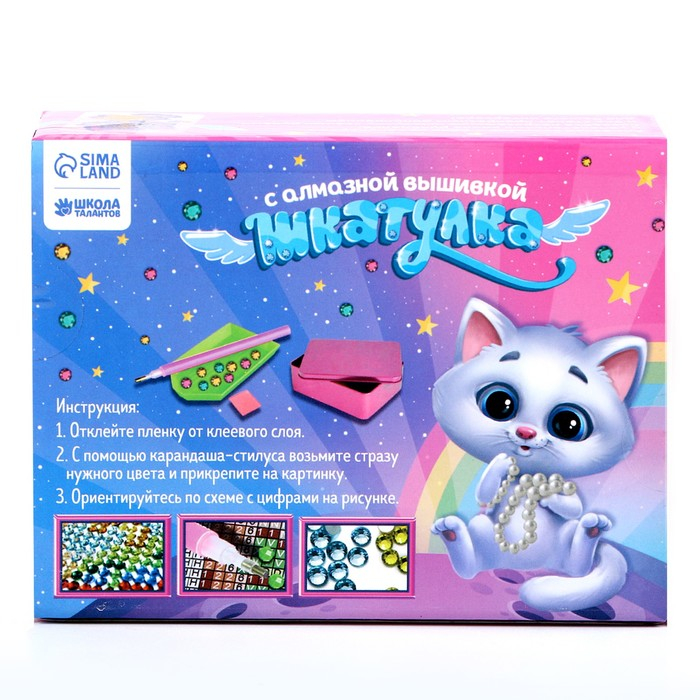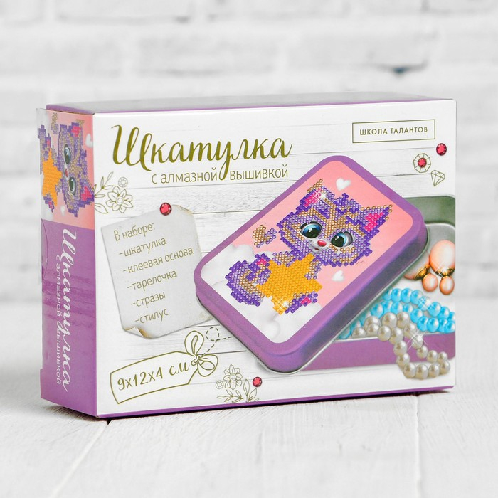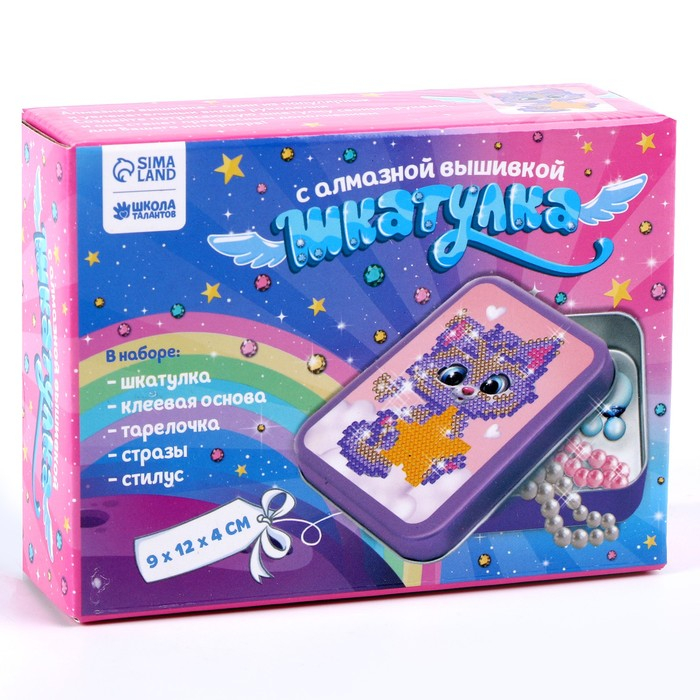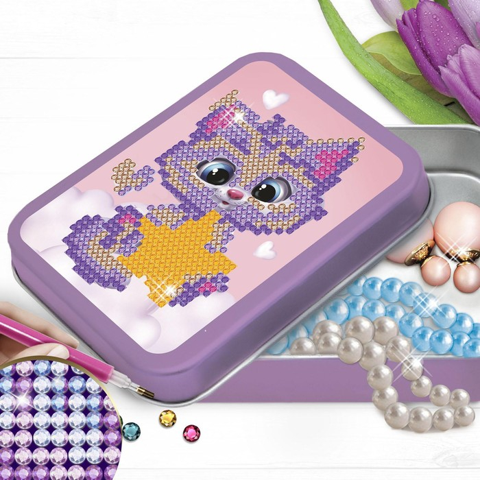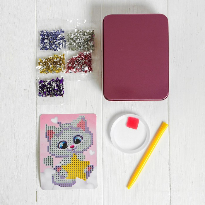 Алмазная вышивка на шкатулке «Котёнок со звездой», 8,5 х 11 см. Набор для творчества
